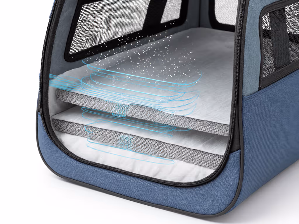 Pets traveling with owners are exposed to new microbial landscapes: airport terminals, vehicle cabins, hotel rooms, and other transit hubs[6]. A well-ventilated, quickly drying carrier reduces secondary microbial shock (the inflammatory response your pet's immune system mounts when suddenly exposed to dense, unfamiliar bacterial loads in a confined space).