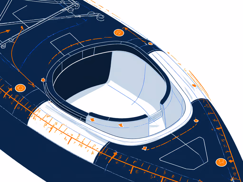 - Measure max depth at bow/stern (e.g., Jackson Kayak Coosa: 9.5" bow taper to 7" stern)